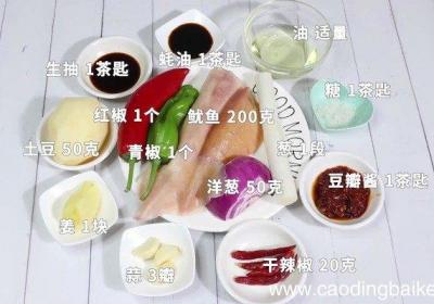 发布时间: 12小时前步骤1主料:鱿鱼200克 。辅料:土豆50克、青椒1个、红椒1个、洋葱50克、葱1段、姜1块,蒜3瓣、生抽1茶匙、蚝油1茶匙、干辣椒20克、豆瓣酱1茶匙、糖1茶匙、油适量 。步骤2鱿鱼撕掉外皮,清洗干净,打上花刀切小块,土豆切片,青椒切段,...