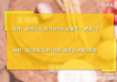 步骤1猪肉50克,竹笋100克,彩椒半个,鸡蛋2个、盐1茶匙,淀粉1汤匙、鸡精1茶匙步骤2彩椒切小块 。【春笋叉烧肉炒蛋怎么做 春笋叉烧肉炒蛋咋做】步骤3竹笋切丁 。步骤4叉烧肉切小块 。步骤5鸡蛋打入碗中,加入鸡精、盐、水淀粉,搅拌均匀...