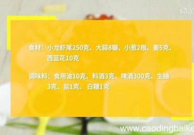 发布时间: 7小时前步骤1【小龙虾尾怎么做 小龙虾尾的做法】食材:小龙虾尾250克、大蒜5瓣、干辣椒5个、八角1个、花椒2克、大葱10克、西蓝花100克 。调味料:食用油10克、啤酒300克、生抽3克、盐1克、 鸡精1克、姜5克 。步骤2大蒜切粒 。步骤3干辣...