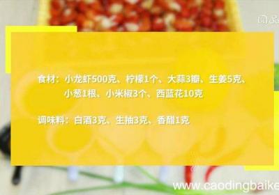 发布时间: 7小时前步骤1食材:小龙虾500克、柠檬1个、大蒜3瓣、生姜5克、小葱1根、小米椒3个、西蓝花10克 。调味料:白酒3克、生抽3克、香醋1克 。步骤2西蓝花掰成小朵,放入沸水锅中焯烫30秒,捞出备用 。【小龙虾怎么做 小龙虾】步骤3柠檬切片 。步骤...