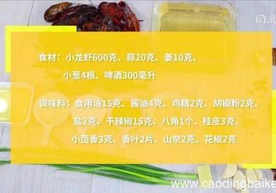 发布时间: 7小时前步骤1食材:小龙虾600克,蒜20克,姜10克,小葱4根,啤酒300毫升 。调味料:食用油15克,酱油4克,鸡精2克,胡椒粉2克,盐2克,干辣椒15克,八角1个,桂皮3克,小茴香3克,香叶2片,山奈2克,花椒2克 。步骤2小龙虾洗净 。步骤...