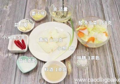 发布时间: 13小时前步骤1准备食材:酸汤泡菜150克、黄喉100克、小米辣5克、蒜3瓣、姜1块、小葱1根、油适量、盐1茶匙、料酒1茶匙、味精1茶匙 。步骤2黄喉洗净切小块 。【酸汤泡菜煮黄喉的做法 酸汤泡菜煮黄喉怎么做好吃】步骤3小米辣切圈 。步骤4蒜切片 。...