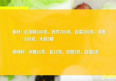 发布时间: 12小时前步骤1食材:红泡椒100克、西芹200克、白菜200克、洋葱100克、大蒜5瓣 。调味料:冰糖10克、盐10克、白醋5克,白酒2克 。步骤2西芹切长条 。【泡椒泡菜怎么做 泡椒泡菜的做法】步骤3白菜切块 。步骤4洋葱切丝 。步骤5碗中放入西...