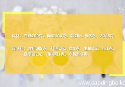 发布时间: 8小时前步骤1食材:白菇200克、肉末100克、蒜2瓣、姜2克、大葱5克 。调味料:食用油5克、料酒2克、盐1克、生抽2克、糖1克、豆瓣酱2克、胡椒粉1克、水淀粉3克 。步骤2白菇切断、蒜切末、姜切末、大葱切末 。步骤3【白菇炒肉末最正宗的做法 白...