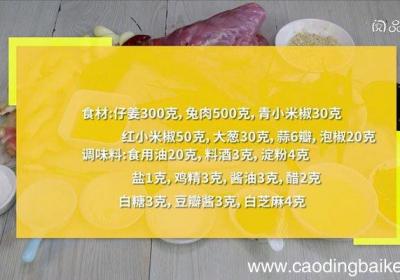 发布时间: 8小时前步骤1食材:仔姜300克,兔肉500克,青小米椒30克,红小米椒50克,大葱30克,蒜6瓣,泡椒20克 。调味料:食用油20克,料酒3克,淀粉4克,盐1克,鸡精3克,酱油3克,醋2克,白糖3克,豆瓣酱3克,白芝麻4克 。步骤2兔肉切小?。?...