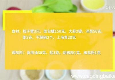 发布时间: 8小时前步骤1食材:梭子蟹3只、面包糠150克、大蒜2瓣、洋葱50克、姜3克、干辣椒2个、上海青20克、食用油30克、盐1克、胡椒粉1克、椒盐粉1克 。步骤2上海青对半切开,放入沸水锅中焯烫40秒,捞出备用 。步骤3大蒜切末 。步骤4洋葱切末 。步...