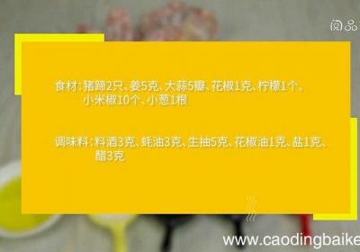 发布时间: 8小时前步骤1食材:猪蹄2只、姜5克、大蒜5瓣、花椒1克、柠檬1个、小米椒10个、小葱1根、料酒3克、蚝油3克、生抽5克、花椒油1克、盐1克、醋3克 。步骤2姜3克切片 。步骤3大蒜2克切末 。【正宗酸辣猪脚的做法 正宗酸辣猪脚怎么做】步骤4柠檬切...