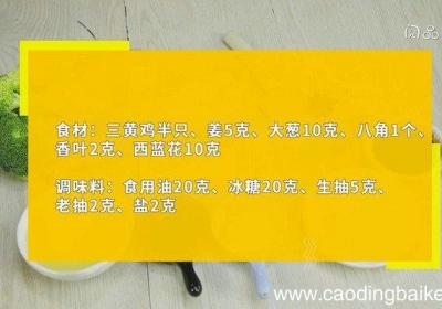 发布时间: 7小时前步骤1食材:三黄鸡半只、姜5克、大葱10克、八角1个、香叶2克、西蓝花10克、食用油20克、冰糖20克、生抽5克、老抽2克、盐2克 。步骤2西蓝花切成小朵 。步骤3放入沸水锅中焯烫60秒,捞出备用 。步骤4姜切片 。步骤5【脆皮手撕鸡的正宗...