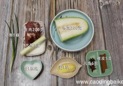 发布时间: 7小时前步骤1准备食材:牛肉200克、冬瓜200克、大葱1段、小葱1根、姜1块、盐1茶匙、八角5克、桂皮5克 。步骤2牛肉洗净切小块 。步骤3冬瓜去皮切小块 。步骤4姜切片 。步骤5大葱切段 。步骤6小葱切葱花 。步骤7首先起锅烧水,下入牛肉焯水2...