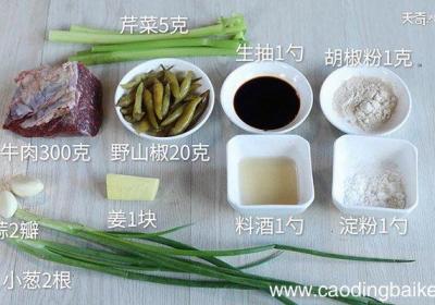 发布时间: 7小时前步骤1食材:牛肉300克、野山椒20克、芹菜5克、小葱2根、姜1块、蒜2瓣、淀粉1勺 。调料:料酒1勺、生抽1勺、胡椒粉1克 。步骤2牛肉切薄片 。步骤3放入料酒1勺、生抽1勺、胡椒粉1克、淀粉1勺拌匀后腌制10分钟 。【野山椒牛肉的做法...