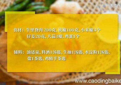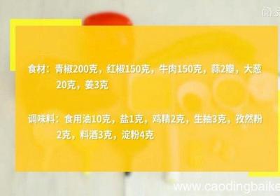 发布时间: 9小时前步骤1食材:青椒200克,红椒150克,牛肉150克,蒜2瓣,大葱20克,姜3克 。调味料:食用油10克,盐1克,鸡精2克,生抽3克,孜然粉2克,料酒3克,淀粉4克 。步骤2牛肉切薄片,加入料酒、淀粉,拌匀,腌制15分钟 。步骤3青椒切块...