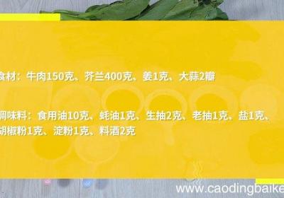 发布时间: 9小时前步骤1食材:牛肉150克、芥兰400克、姜1克、大蒜2瓣 。调味料:食用油10克、蚝油1克、生抽2克、老抽1克、盐1克、胡椒粉1克、淀粉1克、料酒2克 。步骤2芥兰摘去叶子,切片 。步骤3大蒜切片 。步骤4姜切片 。步骤5牛肉切片,加入盐、...