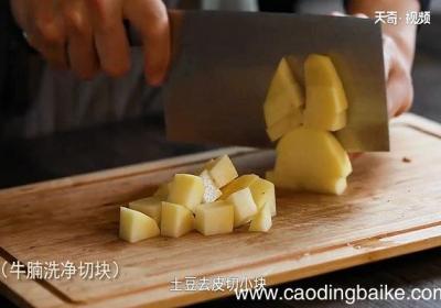 发布时间: 9小时前1、牛腩洗净切块,土豆去皮切小块 。胡萝卜切小块 。姜切片,大葱切粒 。2、牛腩凉水下锅,焯水3分钟,捞出洗净 。3、油温烧至6成热,放入姜葱炒香,放入牛腩、生抽1勺、老抽3克、冰糖3克炒匀 。倒入高压锅中,加入桂皮、八角、香叶、盖上锅盖炖...