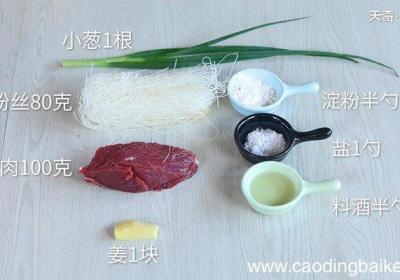 发布时间: 9小时前步骤1准备食材:牛肉100克、粉丝80克、姜1块、小葱1根、淀粉半勺、盐1勺、料酒半勺 。步骤2粉丝放入清水中浸泡10分钟 。步骤3牛肉切片 。步骤4放入盐3克、料酒半勺、淀粉半勺拌匀,腌制10分钟 。步骤5姜切末 。步骤6小葱切葱花 。步...