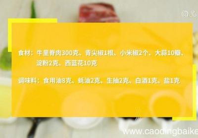 步骤1食材:牛里脊肉300克、青尖椒1根、小米椒2个、大蒜10瓣、淀粉2克、西蓝花10克、食用油8克、蚝油2克、生抽2克、白酒1克、盐1克 。步骤2西蓝花掰成小朵,放入沸水锅中焯烫30秒,捞出备用 。步骤3牛里脊肉切粒,加入淀粉、1克蚝油、...
