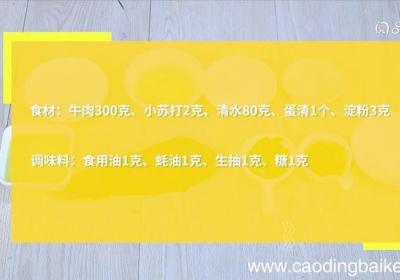 发布时间: 5小时前步骤1食材:牛肉300克、小苏打2克、清水80克、蛋清1个、淀粉3克 。调味料:食用油1克、蚝油1克、生抽1克、糖1克 。【小苏打腌牛肉方法 小苏打腌牛肉】步骤2牛肉沿垂直于牛肉的纹路切薄片 。步骤3牛肉中加入蚝油、生抽、糖、小苏打、40克...