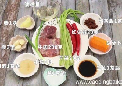 发布时间: 5小时前步骤1准备食材:牛肉200克、沙茶酱1茶匙、姜1块、蒜3瓣、料酒1茶匙、盐1茶匙、油适量、小葱1根、生抽1茶匙、红尖椒30克、芹菜20克、胡萝卜20克 。步骤2胡萝卜切条 。步骤3红尖椒洗净切片 。步骤4芹菜切段 。步骤5牛肉洗净切片 。步...