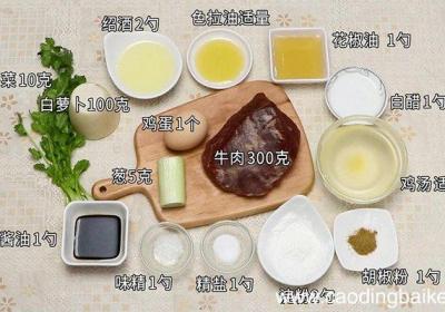 步骤1准备食材:牛肉300克、白萝卜100克、香菜10克、鸡蛋1个、葱5克、淀粉2勺、精盐1勺、味精1勺、胡椒粉1勺、花椒油1勺、酱油1勺、绍酒2勺、白醋1勺、色拉油适量、鸡汤适量 。步骤2将葱切丝 。步骤3【酸辣牛肉的做法 怎么做酸辣牛肉...