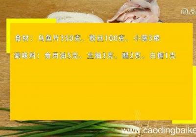发布时间: 11小时前步骤1食材:乌鱼片350克、粉丝100克、小葱3根 。调味料:食用油5克、生抽3克、醋2克、白糖1克 。步骤2粉丝用水泡软 。步骤3放入沸水锅中焯烫15秒,捞出,摆入盘中 。步骤4鱼片放入沸水锅中,快速滑散,焯烫30秒 。步骤5捞出,放在粉...