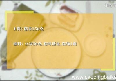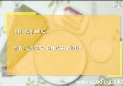 步骤1煮粽子要煮30分钟 。步骤2主料:糯米150克 。辅料:豆沙50克、粽叶适量、粽绳1根 。步骤3糯米提前泡1个小时 。步骤4豆沙分成每个10克的圆球 。步骤5粽叶放入锅中煮开,泡一会,煮棕叶的水倒入容器中备用 。步骤6在煮好的棕叶根尖...