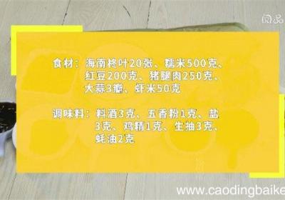 发布时间: 7小时前步骤1食材:海南柊叶20张、糯米500克、红豆200克、猪腿肉250克、大蒜3瓣、虾米50克、料酒3克、五香粉1克、盐3克、鸡精1克、生抽3克、蚝油2克 。步骤2柊叶提前浸泡一晚 。步骤3锅中放水煮沸,放入柊叶煮至叶子变黄,捞出,擦干水分...