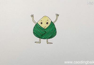 1、先画一个上面尖下面圆身体,然后再给它画上眉毛和眼睛 。【粽子的简单步骤】2、再给粽子穿上一件外衣,画两只小脚,两只举着的双手 。3、然后我们再给粽子的外衣,涂上绿色 。4、手脚涂上黄色就可以了 。...