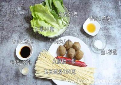 发布时间: 12小时前步骤1准备食材:玉米面条200克、牛肉丸5个、白菜80克、火腿肠一根、生菜50克、盐1茶匙、酱油1汤匙、鸡精1茶匙、香油1茶匙 。步骤2白菜切条 。步骤3火腿肠切条 。【玉米面条的做法 怎么做玉米面条】步骤4将肉丸下入水中煮10-20分钟...