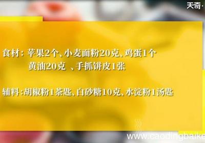 发布时间: 1天前步骤1所需食材:苹果2个、小麦面粉200克、鸡蛋1个、黄油20克 。所需调料:盐1茶匙、胡椒粉1茶匙、白砂糖10克、淀粉20克 。步骤2苹果切块 。步骤3黄油下锅炒至融化 。步骤4再倒入苹果翻炒 。【手抓饼苹果派的做法 手抓饼苹果派怎么做】...