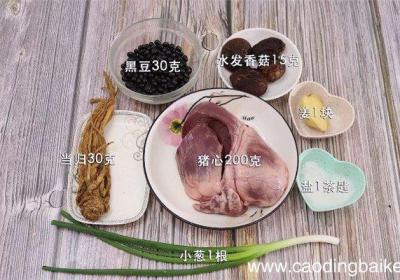 步骤1主料:猪心200克、当归30克辅料:水发香菇15克、姜1块、小葱1根、盐1茶匙、黑豆30克步骤2猪心洗净切片 。步骤3当归洗净切段 。步骤4小葱切葱花 。步骤5姜切片 。步骤6【猪心当归汤怎么做 猪心当归汤做法是什么】黑色浸泡1小时...
