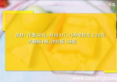 发布时间: 8小时前步骤1食材:洋葱1个、吐司1片、马苏里拉芝士20克、火腿肠1根、沙拉酱1汤匙 。步骤2洋葱洗净切小丁 。步骤3火腿切小丁 。步骤4将沙拉酱均匀涂抹在吐司上,依次放上洋葱丁、火腿、芝士 。步骤5【懒人披萨的做法 懒人披萨怎么做】放入预热好的烤...