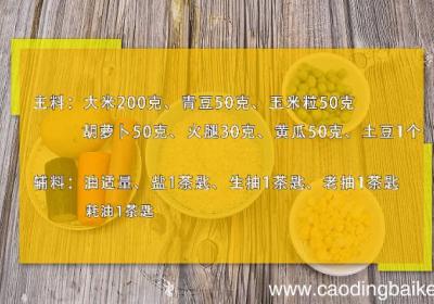 发布时间: 7小时前步骤1准备食材:大米100克、青豆20克、玉米粒20克、胡萝卜20克、火腿10克、黄瓜15克、土豆1个、油适量、盐1茶匙、生抽1茶匙、味极鲜1茶匙、耗油1茶匙 。步骤2大米洗净 。步骤3胡萝卜切丁 。步骤4【懒人焖饭 懒人焖饭的做法】火腿切...