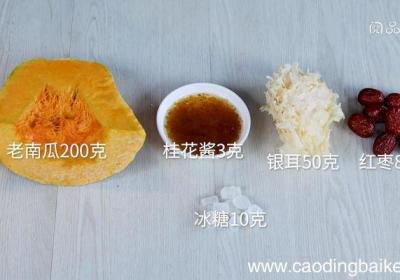 发布时间: 11小时前步骤1准备食材:老南瓜200克、红枣8个、银耳50克、冰糖10克、桂花酱3克 。步骤2老南瓜去皮去瓤洗净切块 。步骤32颗红枣对半切开;剩下的红枣切小丁 。步骤4银耳放入温水中泡发 。步骤5洗净撕成小朵 。步骤6将三分之二的银耳放入盘底,撒...