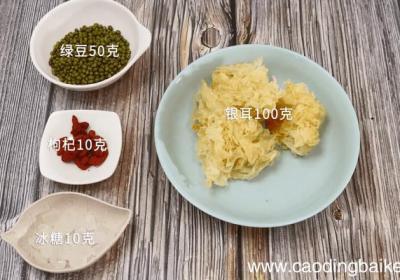 发布时间: 10小时前步骤1准备食材:银耳100克、冰糖10克、枸杞10克、绿豆50克 。步骤2银耳浸泡2小时 。步骤3撕小朵 。步骤4绿豆浸泡30分钟洗净 。步骤5砂锅中放入银耳、绿豆加入适量清水,大火烧开转小火煮30分钟 。步骤6然后加入枸杞盖上盖继续煮10...