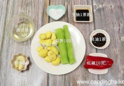 发布时间: 16小时前步骤1准备食材:板栗100克、莴笋100克、红椒10克、蒜3瓣、油适量、盐1茶匙、生抽1茶匙、蚝油1茶匙 。步骤2板栗洗净对半切开 。步骤3莴笋洗净切小块 。步骤4红椒切片 。【莴笋炒板栗 莴笋炒板栗的做法】步骤5蒜切片 。步骤6首先锅内倒...