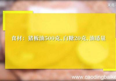 发布时间: 17小时前步骤1食材:猪板油500克 。调料:白糖20克 。步骤2【白糖油渣 白糖油渣怎么做】猪板油切片 。步骤3猪板油倒入冷锅,大火微出油,转小火,直至无多余油熬出,捞出油渣 。步骤4装盘,趁热撒白糖即可 。...