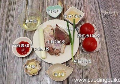 发布时间: 12小时前步骤1准备食材:牛腩200克、西红柿100克、油适量、盐1茶匙、料酒1茶匙、味精1茶匙、姜1块、蒜3瓣、小葱1根、大葱1段、番茄酱30克 。步骤2牛腩洗净切小块 。步骤3姜切片 。步骤4小葱切葱花 。步骤5大葱切段 。步骤6蒜切末 。步骤7...