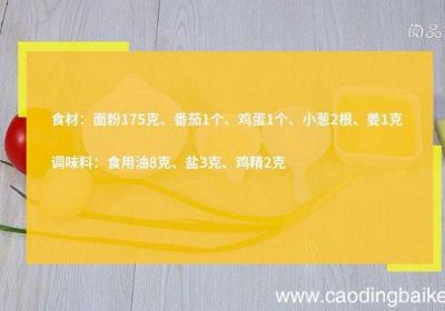 发布时间: 9小时前步骤1食材:面粉175克、番茄1个、鸡蛋1个、小葱2根、姜1克调味料:食用油5克、盐3克、鸡精2克、香油3克步骤2面粉中加入1克盐、拌匀、准备160克清水、一边搅拌一边缓慢清水、搅拌成糊状、再倒入清水没过面糊、养面 。步骤3番茄切小丁 。步...