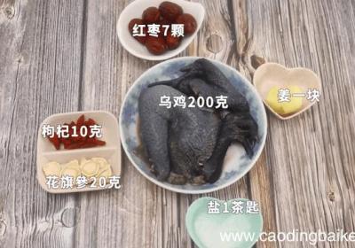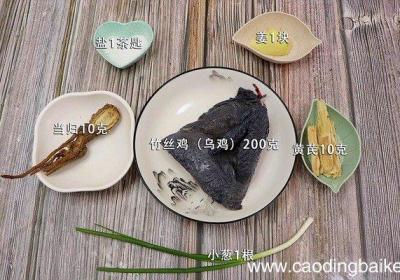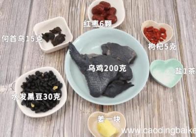 发布时间: 12小时前步骤1准备食材:乌鸡200克、何首乌15克、水发黑豆30克、红枣6颗、枸杞5克、姜1块、盐1茶匙 。步骤2乌鸡洗净剁块备用 。步骤3姜切片 。步骤4水发黑豆洗净备用 。步骤5红枣去核切片备用 。步骤6枸杞浸泡10分钟 。步骤7锅中倒入清水放...