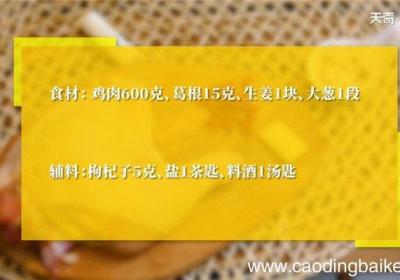 发布时间: 12小时前步骤1准备食材:鸡肉600克,葛根15克,生姜1块,大葱1段,枸杞子5克,盐1茶匙,料酒1勺 。【葛根炖鸡汤的做法 葛根炖鸡汤怎么做】步骤2姜切片 。步骤3大葱切成段 。步骤4鸡肉剁成小块 。步骤5锅中清水烧开后,将鸡块放入沸水中 。步骤6...