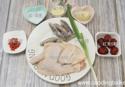 发布时间: 12小时前步骤1主料:海参150克、鸡肉200克、枸杞5克、红枣5颗、盐1茶匙、小葱1段、姜1块、鸡精1茶匙 。步骤2海参洗净 。步骤3鸡洗净剁块备用 。步骤4姜切片 。步骤5红枣去核切片 。步骤6枸杞泡5分钟 。步骤7小葱切葱花 。步骤8锅中烧热水...