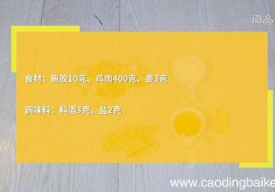 发布时间: 11小时前【鱼胶鸡汤的做法 鱼胶鸡汤怎么做】步骤1食材:鱼胶10克,鸡肉400克,姜3克、料酒3克,盐2克 。步骤2鱼胶用清水泡发24小时,变软后捞出 。步骤3砂锅中放入鸡肉、鱼胶、姜、1升清水、料酒,煮沸后,撇去浮沫,转中小火炖煮2小时,调入盐,拌...