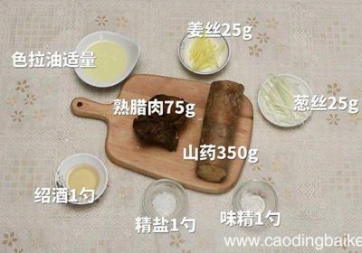 发布时间: 16小时前步骤1准备食材:山药350g、熟腊肉75g、葱丝25g、姜丝25g、精盐1勺、味精1勺、绍酒1勺、色拉油适量 。步骤2将山药去皮、洗净,切成长条片 。【山药炒腊肉怎么做 山药炒腊肉的做法】步骤3放入开水中,略烫几下,捞出沥干 。步骤4熟腊肉...