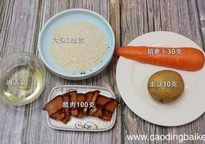发布时间: 14小时前步骤1准备食材:大米200克、腊肉100克、胡萝卜30克、土豆30克 。步骤2【腊肉饭怎么做 腊肉饭怎么做好吃】大米洗净浸泡30分钟 。步骤3腊肉洗净切粒 。步骤4胡萝卜洗净切粒 。步骤5土豆去皮切粒 。步骤6首先起锅倒油,油温6成热,放入...