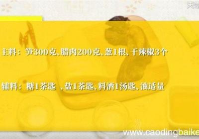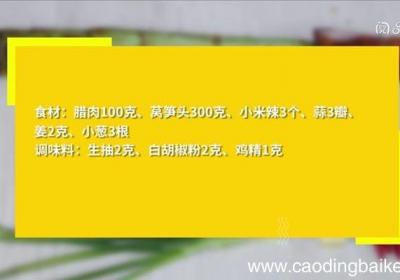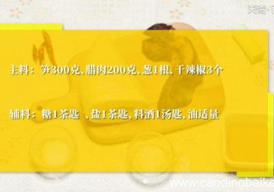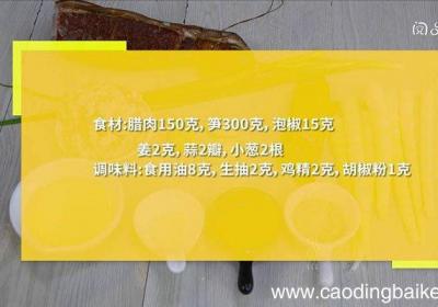 发布时间: 13小时前步骤1准备食材:腊肉200克、冬笋150克、红椒少量、姜1块、大蒜2瓣、小葱1根、鸡精1勺、盐1勺 。步骤2锅中放入适量清水烧开,放入腊肉煮20分钟后捞出放凉,切成薄片 。步骤3冬笋洗净切片 。步骤4红椒切丝 。步骤5姜切末 。步骤6蒜切末...