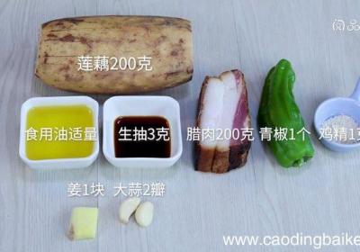 发布时间: 13小时前步骤1准备食材:莲藕200克,腊肉200克,青椒1个,鸡精1克,食用油适量,姜1块,大蒜2瓣,生抽3克 。步骤2莲藕切丁 。步骤3放入清水中浸泡5分钟 。步骤4青椒去籽切块 。步骤5姜切末 。步骤6蒜切末 。步骤7锅中加入适量清水大火烧开,...