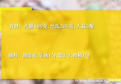 发布时间: 9小时前步骤1食材:火腿100克、丝瓜300克、大蒜3瓣 。辅料:油适量、生抽1勺、盐1勺、鸡精1勺 。步骤2火腿切成细丝 。步骤3丝瓜去皮后切滚刀块 。步骤4蒜切粒 。步骤5大葱切片 。步骤6炒锅油温6成热,下入蒜 大葱,倒入火腿丝爆香,加入丝瓜...