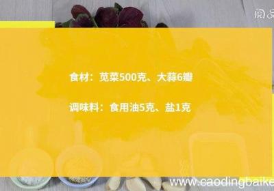 发布时间: 16小时前步骤1食材:苋菜500克、大蒜6瓣 。调味料:食用油5克、盐1克 。步骤2苋菜洗净,控干水分,切断 。步骤3大蒜切末 。步骤4热锅倒油,油温5成热,下盐、蒜末,小火炒香 。步骤5放入苋菜,翻炒 。步骤6苋菜变软后,翻炒均匀即可 。【蒜蓉炒红...