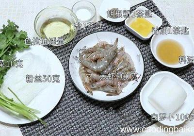 发布时间: 15小时前步骤1准备食材:大虾200克、白萝卜100克、粉丝50克、香菜10克、盐1茶匙、料酒1汤匙、胡椒粉1茶匙、香油1茶匙、色拉油适量 。步骤2香菜切末 。步骤3剪去虾须,洗净备用 。步骤4白萝卜切丝 。步骤5汆水捞出 。步骤6粉丝用温水泡软 。...