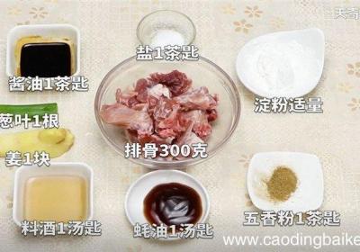 步骤1准备食材:排骨300克,姜1块,大葱叶1根,料酒1汤匙,酱油1茶匙,蚝油1汤匙,五香粉1茶匙,盐1茶匙,淀粉2汤匙【清蒸排骨怎么做 清蒸排骨的做法】步骤2姜切片 。步骤3葱切葱花 。步骤4将排骨放入盘中,加入料酒,生抽,盐,蚝油 。步...