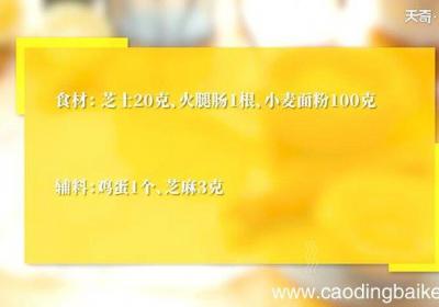 发布时间: 16小时前步骤1准备食材:芝士20克,火腿肠1根,鸡蛋1个,小麦面粉100克,芝麻3克 。步骤2火腿切丁 。步骤3将面饼铺上一层芝士 。步骤4撒上一层火腿肠丁 。步骤5再撒上一层芝士 。步骤6将面皮包裹起来 。步骤7放入烤盘中 。步骤8刷上一层蛋黄液...
